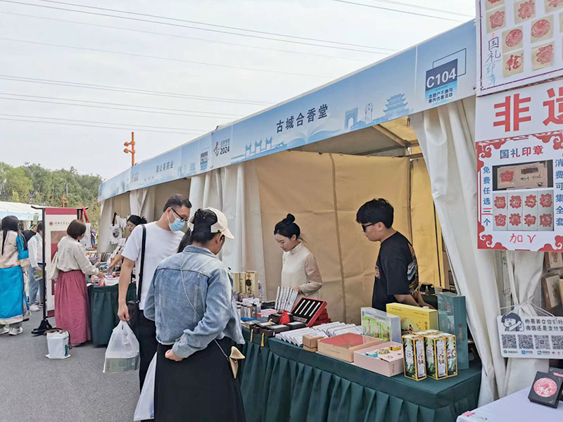 1、9月3日,古城香業(yè)參展保定理工學(xué)院迎新生“非遺市集”,展出古法合香、香珠手串、香牌、香囊等上百種香文化產(chǎn)品,非遺與國潮交融,傳統(tǒng)與時(shí)尚碰撞,中式薰香深受大學(xué)生的歡迎。